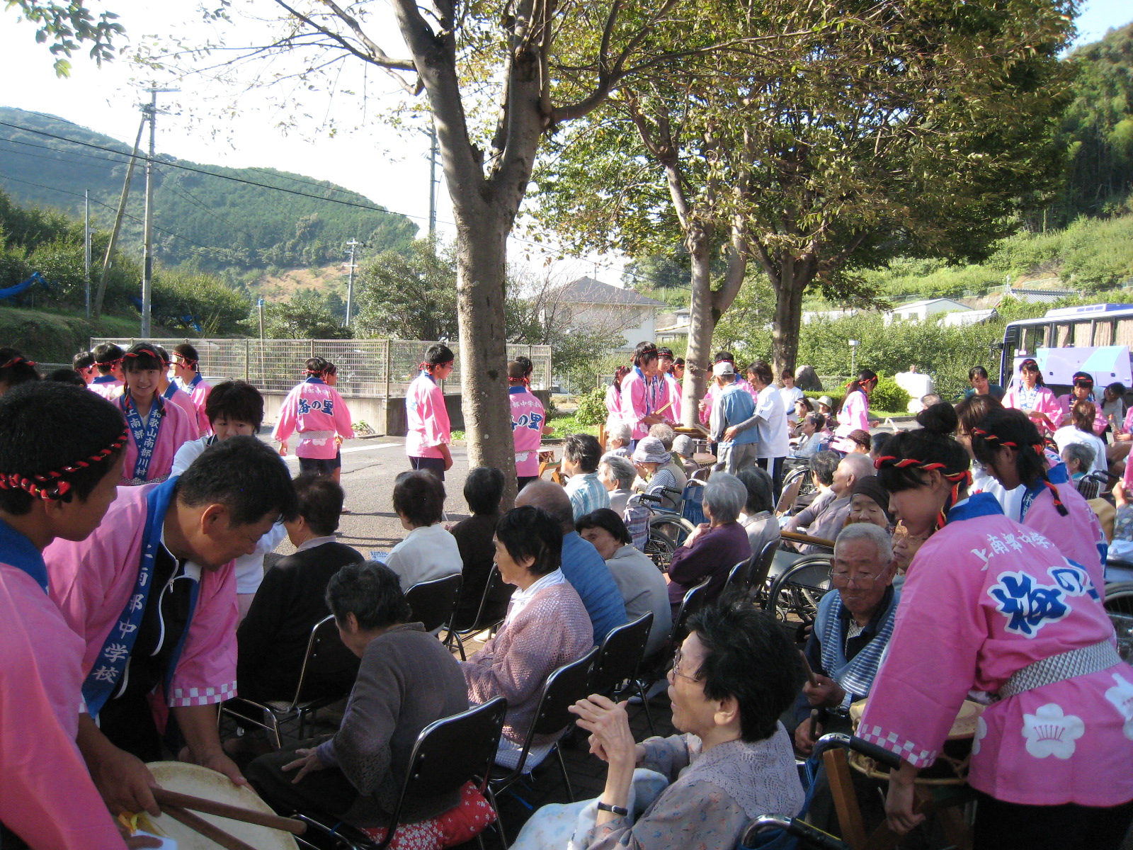 秋空の下、勇壮な太鼓技を披露していただき、演奏後、利用者の皆さんとの