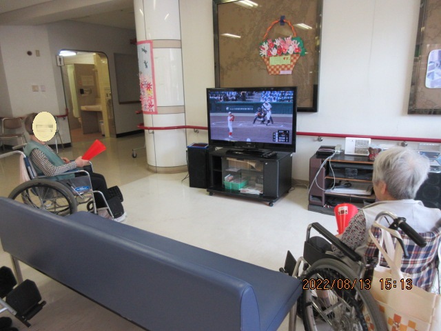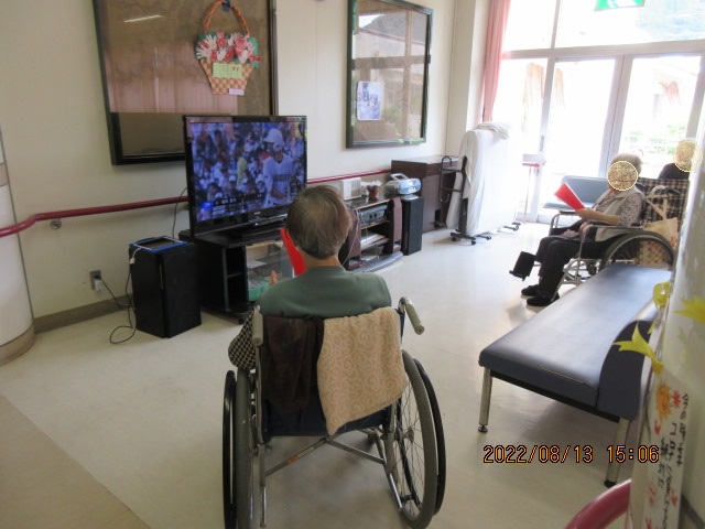 ホールにおられる利用者の方と一緒に応援しました。皆さん地元とあって熱心に