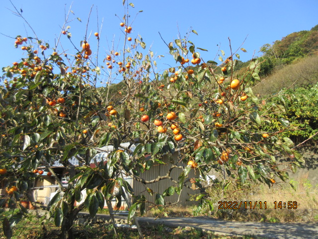 今日は久しぶりに日中暖かく、天気も良かったので利用者様と園庭近くの柿の
