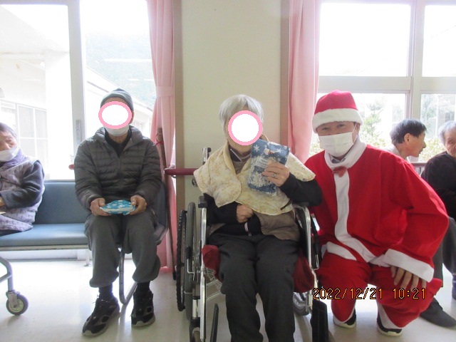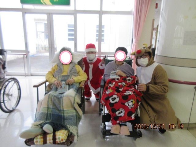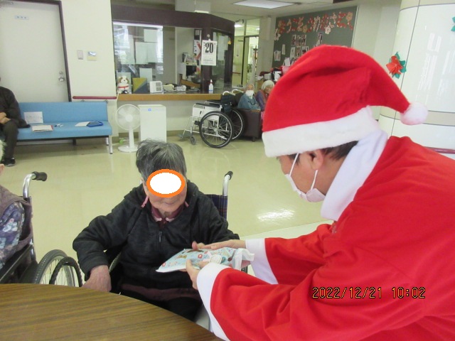 コロナ禍の為クリスマス会は行わず利用者様にサンタとトナカイよりプレゼン