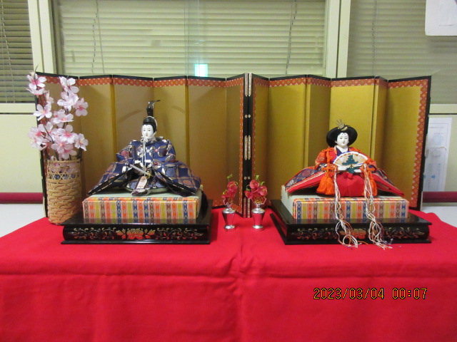 玄関に毎年お雛様を飾っています🎎 利用者様がお雛様を見てかわいらしいね