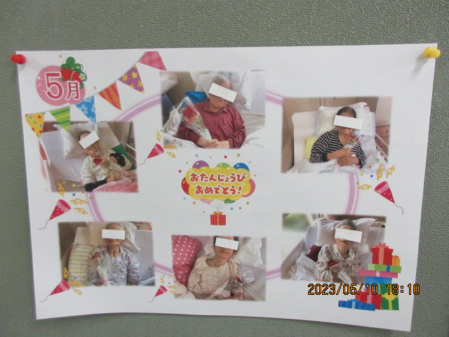 なりました。1日に3月の誕生会が行われました。施設の方、5名様が誕生日を迎