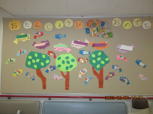 また4月の誕生会を5日に実施し誕生者に花束をお渡しし記念撮影をしました。