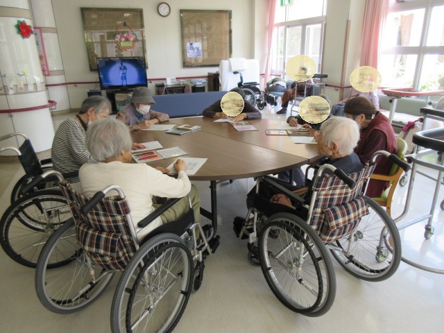 PM ホールにて利用者様に塗り絵をして頂きました。