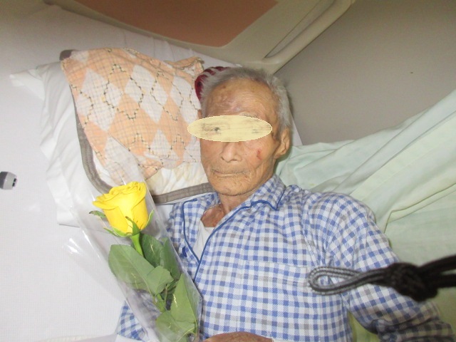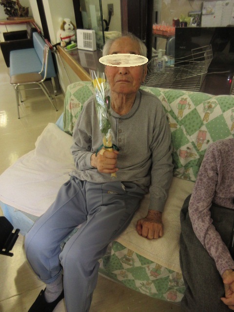 男性利用者様にひとりずつ黄色のバラの花を渡しました。