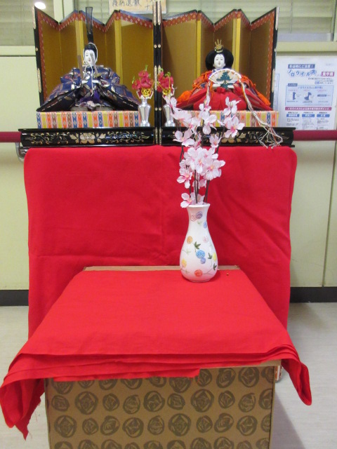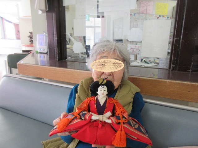 みなべでは桃の節句は旧暦のためお雛様と写真を撮りました。