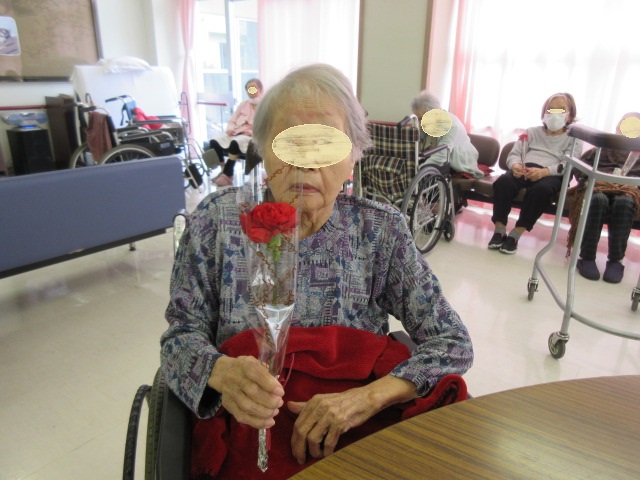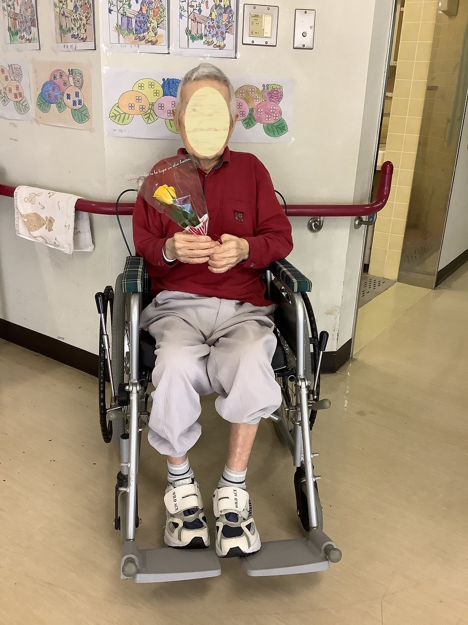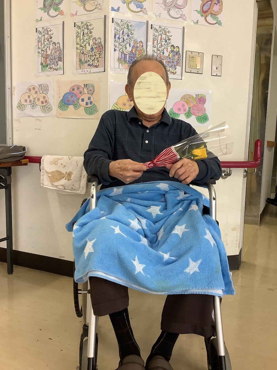 今日は父の日ということで男性利用者様に黄色のバラをプレゼントしました。