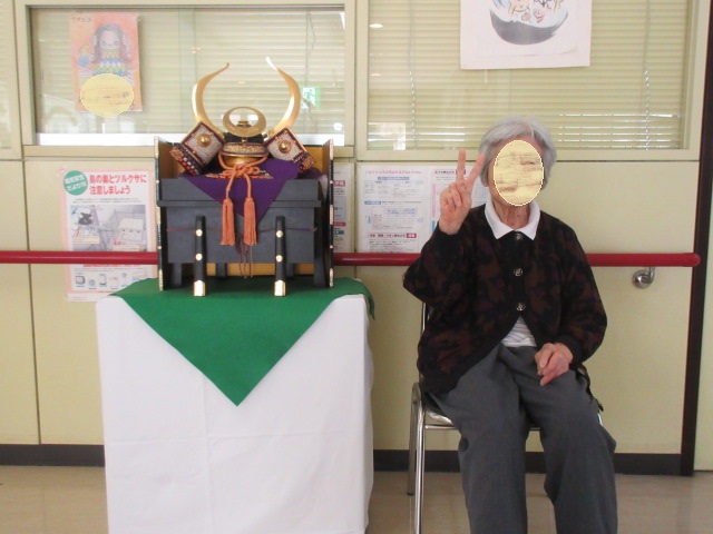 今日は、端午の節句という事で5月人形の前で写真を撮りました。