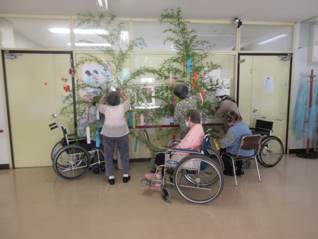 今日は、七夕ということで、利用者の皆さまにお願い事を書いてもらいました。