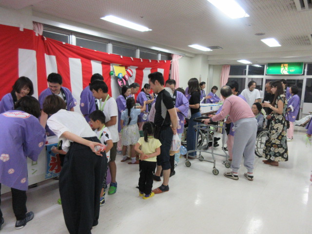 天候は良かったのですが夕方でも外は暑いので入所者様の体調を考慮し室内で行いました。