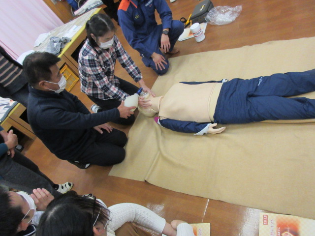 施設内研修として日高広域消防の方を講師に招き、AEDの使い方や緊急時の対応について研修をしました