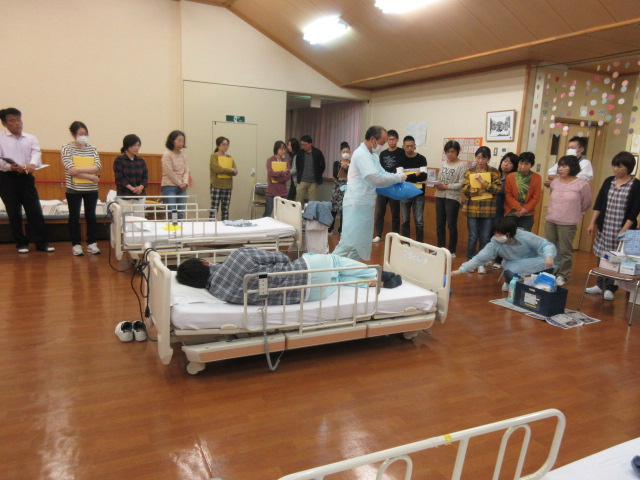ノロウイルスは感染力が強い為、職員が媒介者にならないような対応の仕方・嘔吐物の処理の仕方を再確認できた良い機会だったと思います。